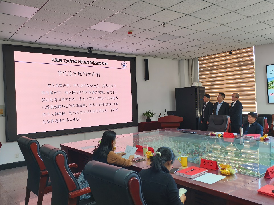2024年11月29日下午14点,矿山流体控制国家地方联合工程实验室2024届博士研究生学位论文答辩会在太原理工大学迎西校区逸夫楼307会议室举行。